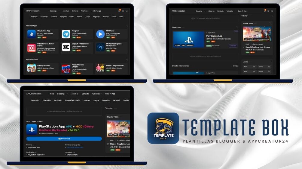 ¿Buscas la plantilla perfecta para tu blog de descargas de apps y juegos? ¡Has llegado al lugar indicado! Nuestra plantilla para Blogger está diseñada para ofrecer todo lo que necesitas para destacar. Con una carga rápida, tus visitantes disfrutarán de una experiencia fluida y sin interrupciones, lo cual es crucial para mantenerlos enganchados. El diseño elegante y moderno asegura que tu blog no solo sea funcional, sino también visualmente atractivo, captando la atención de cualquiera que lo visite.